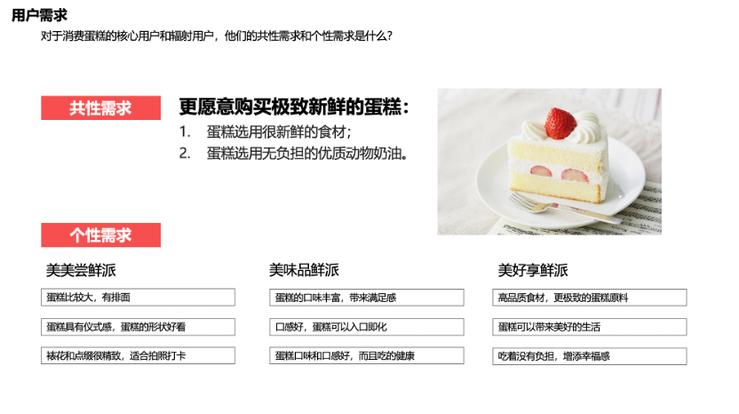 根据产品优势定位,洛可可咨询团队精准定位目标用户,确定了产品的目标用户群体为:更愿意购买新鲜、健康蛋糕的女性用户。