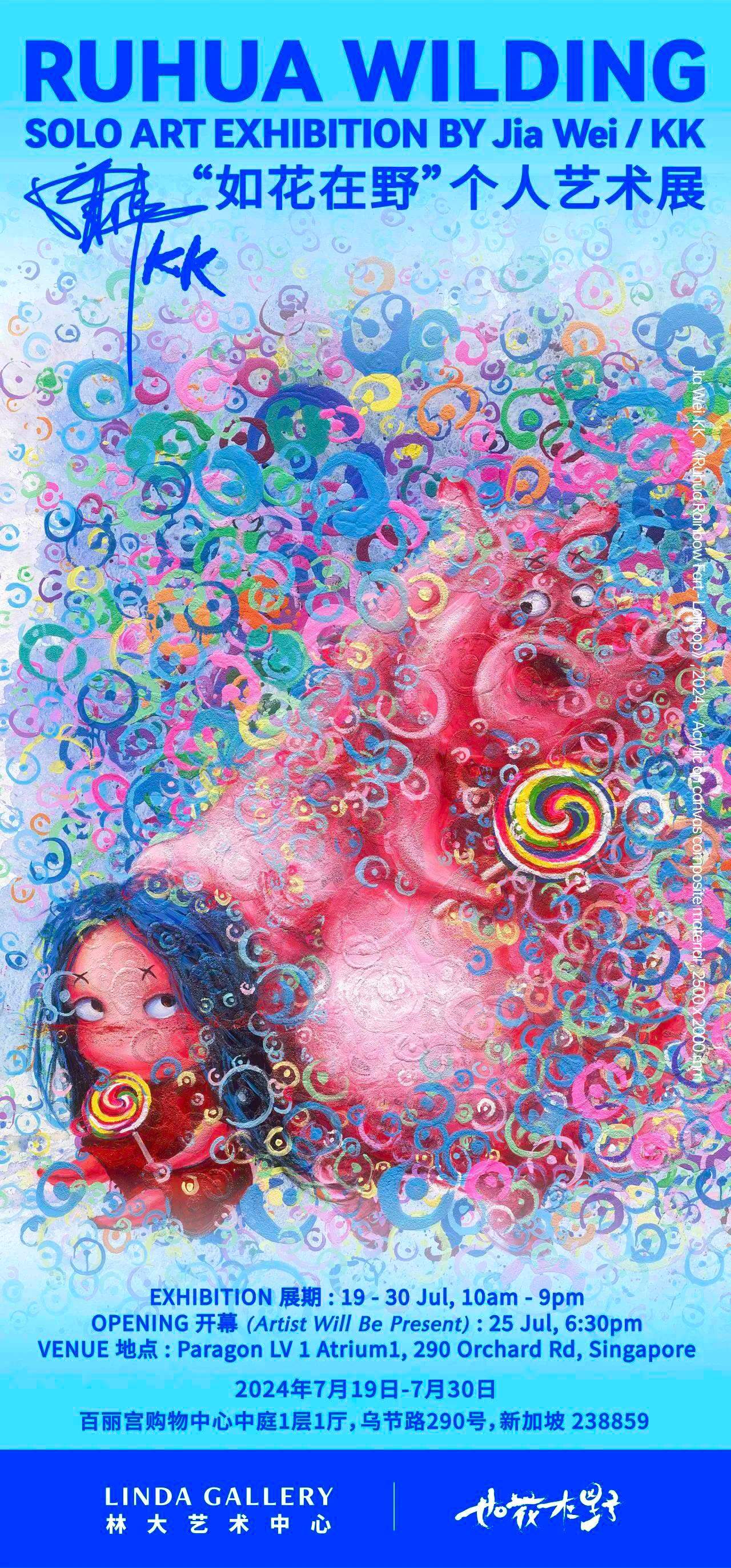 2024年7月19日-30日,艺术家贾伟KK“如花在野”个人艺术展将于新加坡乌节路290号百丽宫启幕,由新加坡林大艺术中心合作呈现。