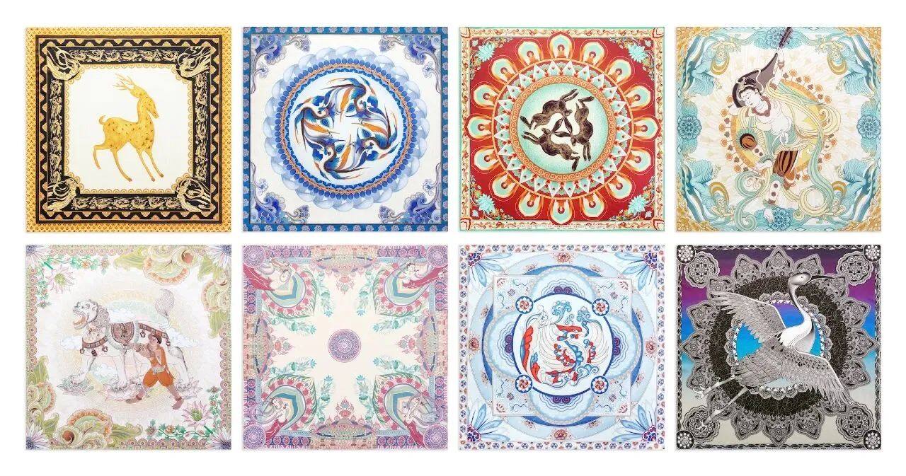 神秘的三兔共耳,童话中的九色鹿,翩翩起舞的飞天神女,从敦煌莫高窟的藻井幻化为方寸之间的丝巾图案。这一次,人人都是设计师,可从繁天夺目的敦煌壁画中摘取一颗小小星辰佩戴于颈上。
