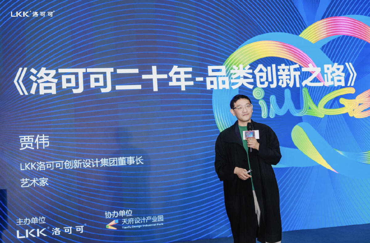 在分享环节,LKK洛可可创新设计集团董事长、艺术家贾伟表达了对成都洛可可乔迁的祝贺和对峰会活动圆满举办的祝福。